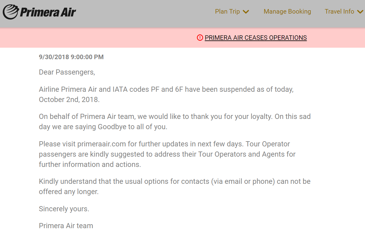 Rumeur de faillite chez Primera Air