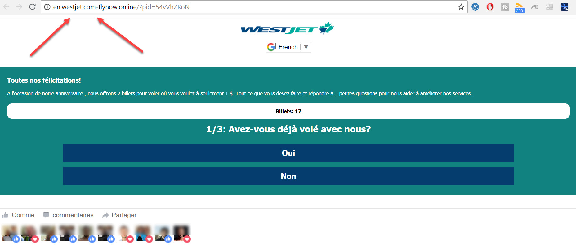 Voir l'article de WestJet en 2016 concernant cette offre frauduleuse